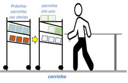 Utilize o abastecimento lateral das caixas ou carrinhos somente quando o frontal não for possível. Também podem ser usados carrinhos que já foram pré-preparados no armazém. Neste caso, o abastecedor retira o último carrinho utilizado e o abastece com o novo.
