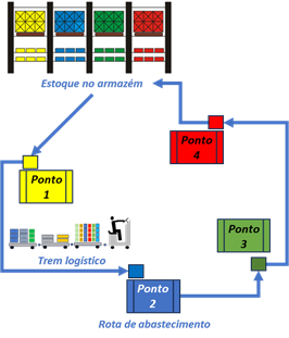 Para que isso ocorra, devemos projetar o que chamamos de “ponto de uso”, que é composto pela área onde o material fica estocado e a área de trabalho do operador (também chamada de área de agregação de valor), e também como o material deve ser transportado.