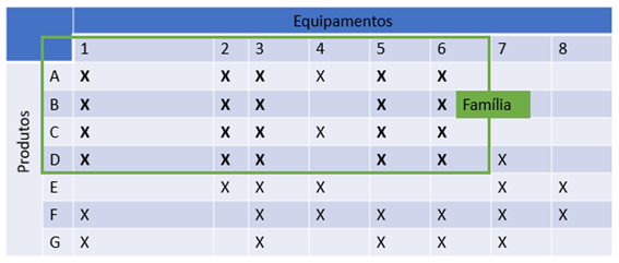 Abaixo, apresentamos um modelo de matriz que ajudará a visualizar quais produtos pertencem à mesma família.