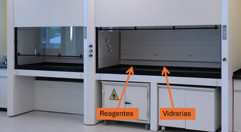 Figura 4: Foto de uma capela de exaustão com armários de reagentes e vidrarias acoplados