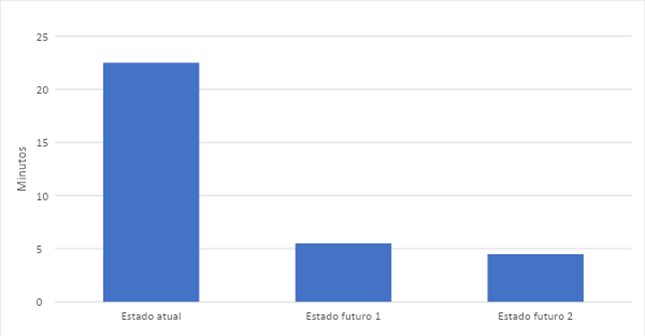 O time local já havia realizado várias melhorias, mas a produção final diária continuava baixa. Na prática, no fim do dia, o tempo médio encontrado para produção era de 22:30 minutos por IBC considerando os três operadores. Este tempo impactava em atraso na entrega para o cliente e horas extras.