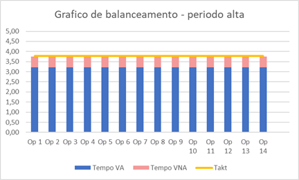 Uma vez que nosso caso envolve dois períodos cíclicos com tempos takt distintos, os passos 3 e 4 foram repetidos, mas agora levando em consideração a demanda durante o período de alta (dezembro a maio):