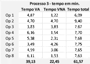 Nesta etapa, o foco é a análise das atividades e o tempo gasto em cada uma delas, dividindo o tempo em tempo de valor agregado (VA), em que o produto está sofrendo uma transformação, e tempo de valor não agregado (VNA), normalmente relacionado a desperdícios. A análise de como a operação é feita também é importante, pois, na maioria das vezes, junto com o balanceamento feito anteriormente, são encontradas muitas oportunidades de redução de tempo por meio da eliminação do VNA.