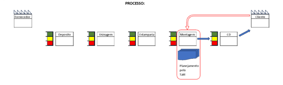 Partimos do princípio de que, conforme os conceitos lean, sempre buscamos o fluxo contínuo; onde ele não é possível, usamos estoques controlados (supermercados) entre os processos, e somente um ponto desse processo é programado. E é nesse ponto programado que aplicamos o planejamento pelo takt.