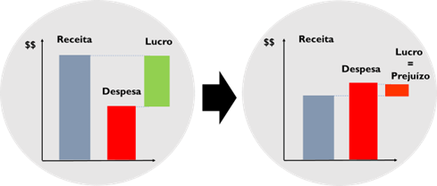 - Queda na receita: Este caso apresenta impacto direto na redução do lucro da empresa, conforme figura abaixo.