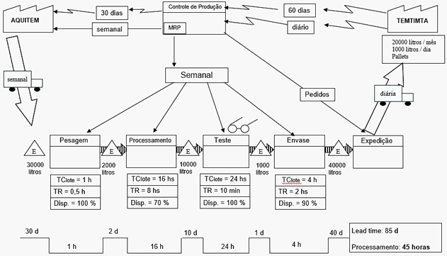 Além dos itens anteriores, uma técnica que contribui para entender melhor o problema e em qual parte do fluxo isso tem maior impacto é a de mapear o processo e enxergar as maiores perdas e desperdícios, conforme demonstrado na figura abaixo: