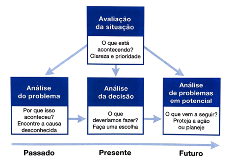 Uma das técnicas utilizadas é denominada método KT (Kepner e Tregoe), ou técnicas racionais de processo.
