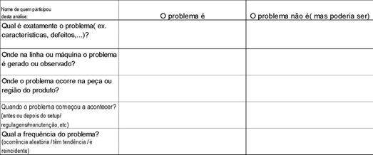 Um método que pode ser desdobrado na prática a partir do modelo acima seria colocar em prática os questionamentos apresentados abaixo, facilitando a análise e contribuindo para identificar e clarificar os problemas.