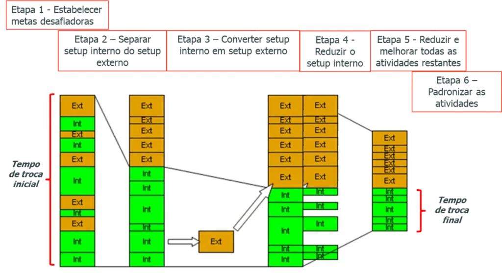 O Mapeamento do Fluxo de Valor (atividade que permite enxergar todo o processo produtivo e seus desperdícios e definir prioridades para tornar o processo mais enxuto) auxilia na identificação do momento mais adequado e parte do fluxo para implantar esse novo método de trabalho para reduzir o tempo de troca.