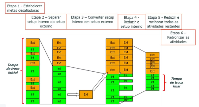 Com base em nossa experiência, esse processo auxilia na redução de aproximadamente 40 a 50% do tempo original, e com várias aplicações dessa metodologia, muitos processos conseguem atingir o tempo definido por Shigeo Shingo como adequado, ou seja, abaixo de 10 minutos.