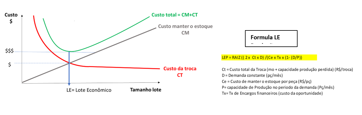 Uma dica para verificar se o lote é adequado ou não é utilizar a fórmula do Lote Econômico (Fig. 2).