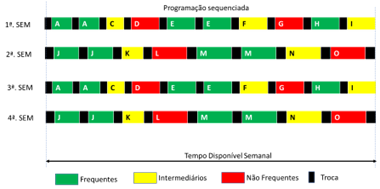 Ao final, o objetivo é ter em cada ciclo de programação vários produtos frequentes (os mesmos itens estarão na maioria das frequências), e alguns intermediários e não frequentes (não serão os mesmos itens em cada frequência).