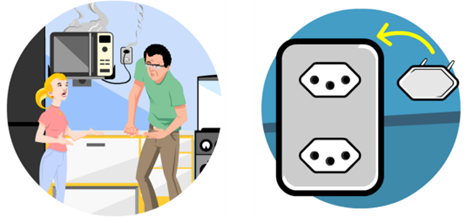 Você pode aplicar o poka yoke na sua casa também. No meu caso, aplicamos um poka yoke simples para evitar que o microondas fosse ligado na tomada errada: colocamos um plug nas tomadas de 220 volts. Veja na figura: